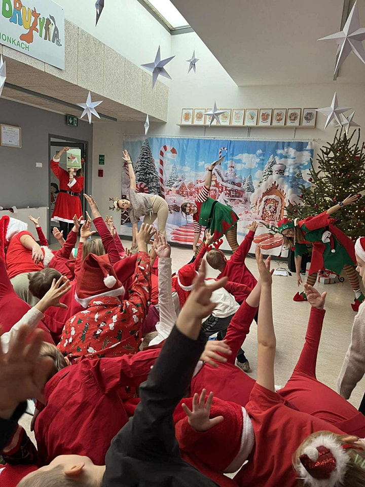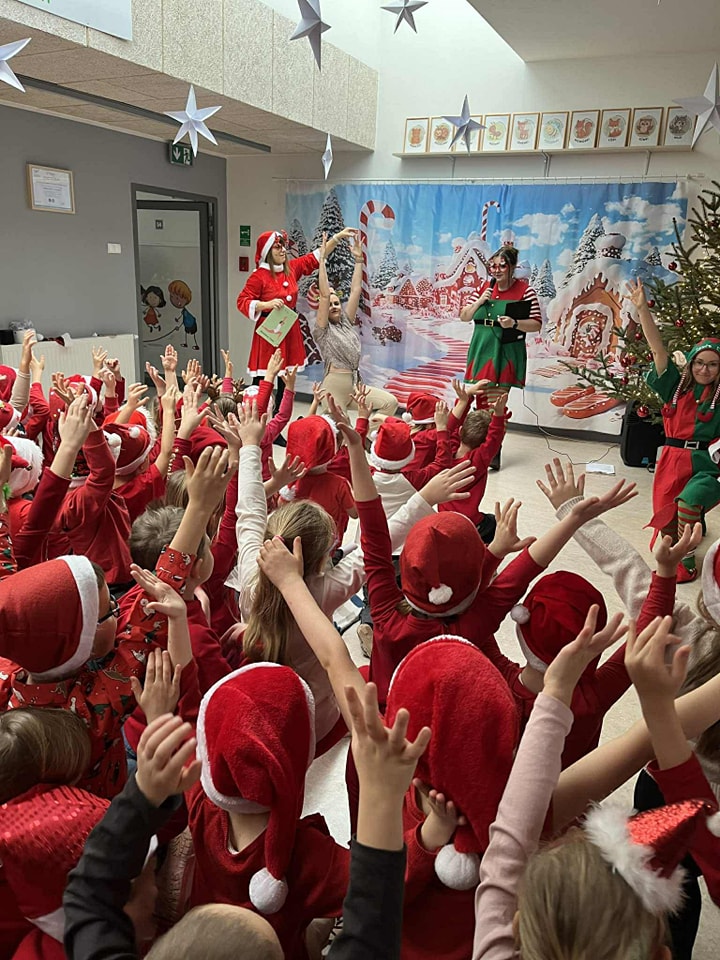 Po zakończonym przedstawieniu dzieci udały się do szatni, gdzie czekała na nie niespodzianka – ślady pozostawione przez Mikołaja 👣. W butach każdego dziecka znalazły się drobne prezenty, które wywołały wiele radości i uśmiechu.