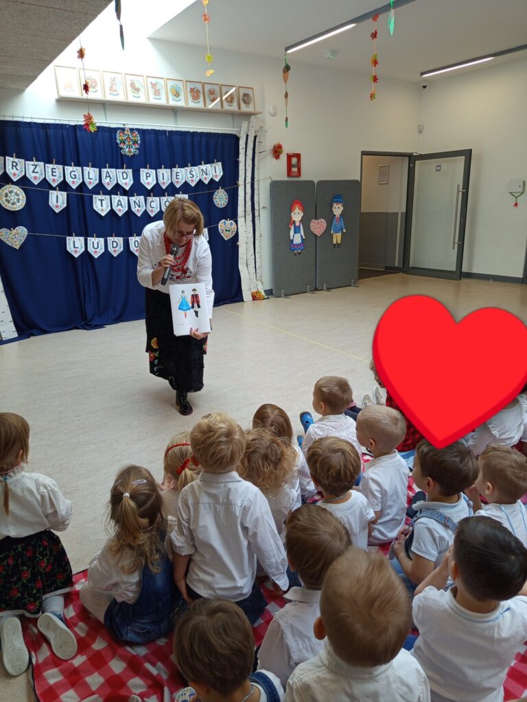 Dnia 14 listopada 2025 r. w naszym przedszkolu odbył się wyjątkowy i niezwykle barwny Przegląd Pieśni i Tańców Ludowych. Wydarzenie zgromadziło wszystkie grupy przedszkolne, a każda z nich zaprezentowała wybrany region Polski, jego charakterystyczny taniec oraz tradycyjną pieśń.